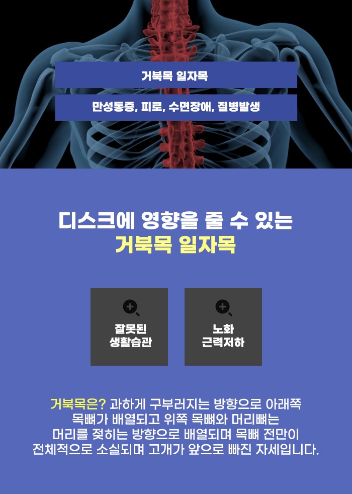 잘못된 자세가 평택디스크치료 고민되는 추간판 탈출증의 발생에 영향을 줄 수 있다는 점에 대해서 먼저 설명했었는데요. 거북목은 대표적인 잘못된 자세 중 하나로 많은 사람에게 알려지고 있는 문제인 것 같습니다. 요즘은 오랜 시간 한자리에 앉아서 컴퓨터를 하며 모니터를 보는 분, 일이나 공부를 하는 분이 많습니다. 이런 상황에서 목을 앞으로 쭉 뺀 자세를 유지하며 경추의 부담이 커질 수 있는데, 이런 거북목은 경추 추간판 탈출증 발생에 큰 기여를 하기도 합니다.