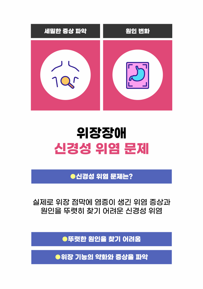 또한 여러 세균과 진균, 바이러스, 기생충 감염 등에 의해 위염이 생기기도 하며, 다른 질병이나 외상으로 인해 위염이 생기는 경우도 있다고 합니다. 위염이 의심되는 증상이 있어서 검사를 받아봤는데, 염증이 없다는 결과를 듣게 되는 경우도 있는데요. 이 경우에는 염증이 없지만 위장 기능이 약해지고 정상적인 기능이 유지되지 않는 상태인 신경성 위염 문제에 대해서 알아야 할 수도 있다고 합니다.