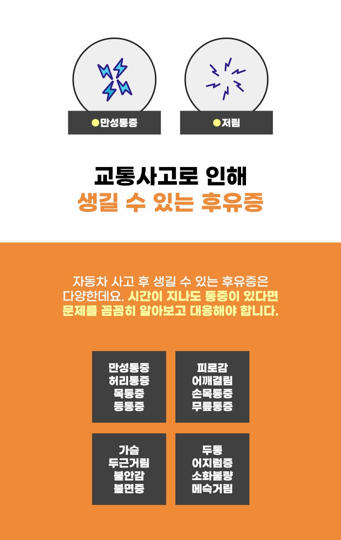 다양한 형태로 생길 수 있는 자동차 사고 후유증과 통증!
