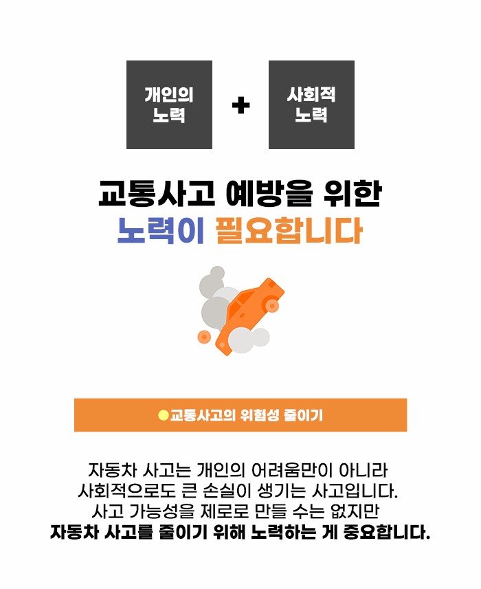 다양한 방법으로 안전하게 운전을 하기 위해 노력하고 있는데요. 또한 방어운전, 정기적인 차량 점검 등을 통해 사고 위험을 줄여야 하겠습니다. 하지만 본인이 열심히 노력하고, 베테랑 운전자로 실력 있는 분이라고 하더라도, 사고 가능성을 제로로 만들 수는 없습니다. 사고 위험은 어디에서나 존재하는데요. 다른 사람의 실수로 사고가 생기기도 하고, 순간적인 도로 상황으로 인해 사고가 생기기도 합니다.