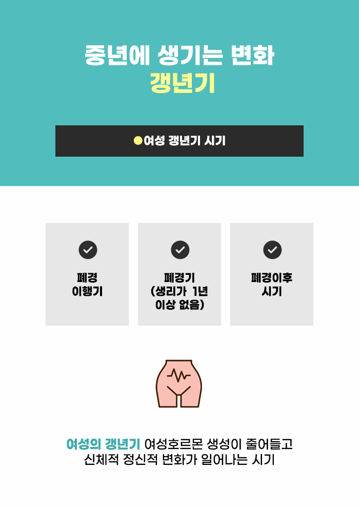 자신이나 혹은 가족이 중년 연령이 되면서 갱년기에 대한 관심이 커질 수 있는데요. 현재 갱년기에 대한 고민이 있는 분이라면 이 페이지를 통해 갱년기에 생길 수 있는 증상, 그리고 대비해야 하는 문제에 대해서도 아셨으면 합니다.