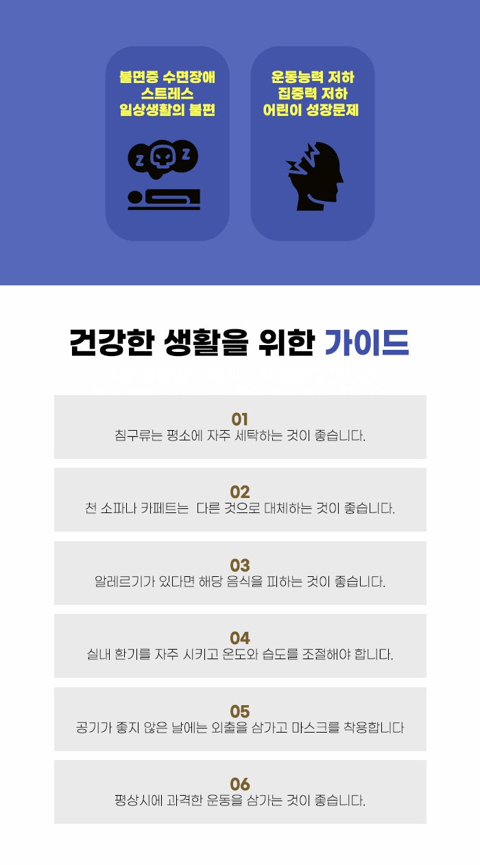 알레르기 비염을 일으키는 원인 항원은 다양할 수 있다고 하는데요. 특히 꽃가루, 동물의 털, 먼지와 진드기 등이 이유가 되는 경우가 흔하다고 합니다. 평소 침구를 자주 세탁하고 커튼 관리도 잘해주는 게 좋은데요, 천 소파 등 천 가구를 사용하지 않는 것도 좋다고 합니다. 그리고 바깥 공기 질이 나쁜 날에는 외부 활동을 자제하는 것도 필요합니다.