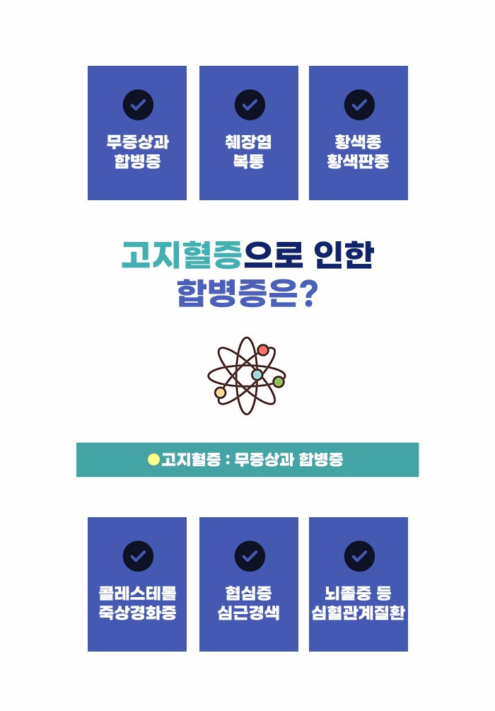 유전적 요인도 영향을 주는데요, 유전으로 특정 지질이 혈액 내 증가해 고지혈증이 생길 수 있기에 가까운 가족, 친척 등에게 고지혈증 문제가 있는지 알고 있는 것도 좋겠습니다. 콜레스테롤이 혈관벽에 쌓일 경우 죽상경화증이 생길 수 있는데요. 죽상경화증의 결과로 뇌졸중, 심근경색, 협심증 등이 발생할 수도 있다고 합니다. 생명까지 위협하는 고지혈증 문제가 될 수도 있습니다.
