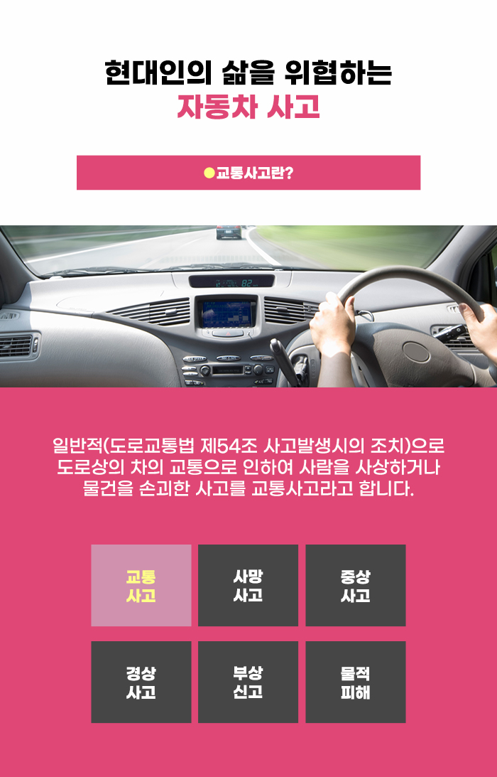 그리고 스트레스를 풀고 휴식하기 위해 명상을 하는 것 같은 노력을 하는 분도 있습니다. 하지만 건강을 위해 여러 노력을 기울이더라도, 이런 노력의 성과를 잃어버릴 수 있는 사고에 대해서는 잘 모르는 분도 많은 것 같습니다. 교통사고는 많은 사람의 생명을 앗아가는 사고이기도 하며, 우리나라에서는 90년대에 가장 많은 자동차 사고가 존재했다가, 현재는 점차 줄어들고 있지만 여전히 많은 분이 겪는 사고이기도 합니다.