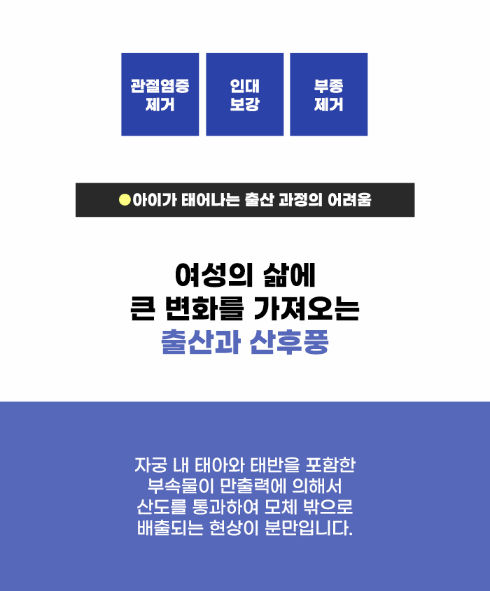 세상에 하나의 생명이 태어나는 과정인 임신, 출산 과정은 수없이 되풀이되어 온 일이지만 쉬운 일은 아닌데요. 산모가 아이를 품고 낳는 과정에는 많은 어려움이 따르게 됩니다. 그렇기에 출산 후 산후조리가 중요하다고 하며 산후조리를 적절하게 하지 못하는 경우 산후풍이 생기기 쉬울 수도 있다고 하는데요. 또한 산후 부기가 잘 빠지지 않고 몸무게가 줄지 않는 문제를 겪는 경우에도 건강한 순환이 일어나지 않는 상태로 봐야 할 수도 있다고 합니다.