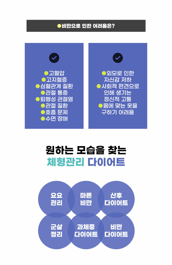 비만에 대한 충분한 이해 없이는 비만에서 벗어나는 것이 더욱 어렵기 때문입니다. 평택역한의원 알아보는 분의 경우 이전에 이미 다이어트를 시도했던 분이 많을 것 같은데요. 자신의 몸 상태와 비만의 원인에 대해서 잘 모르다 보니 비만 상태에서 탈출하는 게 더 힘들 수 있습니다. 비만의 원인 파악과 생활 습관 변화, 체질 변화 등을 위해 힘쓰시길 바랍니다.