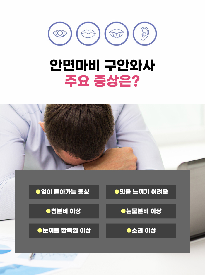 뇌출혈 문제나 생명이 위독한 상태, 혹은 몸의 다른 부분에 마비가 생길 수 있는 상태가 아니라면 우선 다행이라는 생각이 들 수도 있습니다. 하지만 평택구안와사 문제로 얼굴에 마비 증상이 생기는 것은 쉽게 넘길 수 있는 사소한 일, 신경 쓰지 않아도 되는 일이 아닌데요.