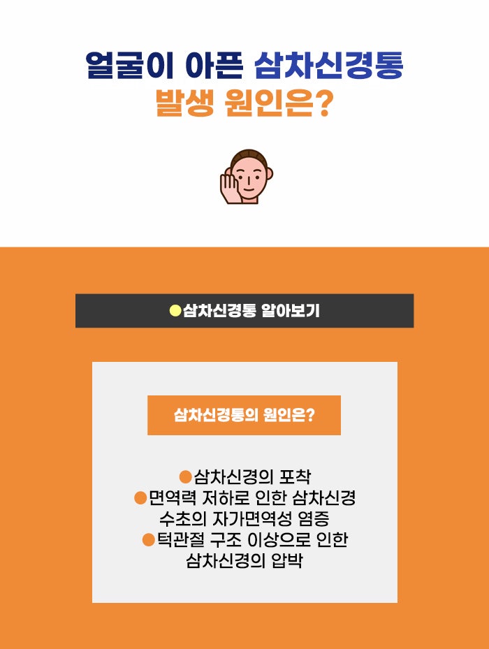 안면신경의 염증 문제로 인해, 얼굴 표정을 짓기 힘든 마비 증상이 생기기도 하지만, 다른 경우도 있는데요, 얼굴과 머리의 감각을 전달하는 신경에 이상이 생기면서, 강한 통증이 발생하는 경우도 있다고 합니다. 삼차신경의 압박, 손상, 염증 등으로 인해 이런 문제가 생기는 것을 고려할 수 있다고 합니다.