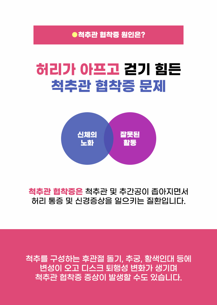 또한 허리가 아프면서 엉덩이, 항문 쪽이 찌르는 듯이 아프다면? 척추관 협착증 같은 다른 문제일 수도 있다고 하는데요. 이 척추질환은 추간공이 좁아지고 신경이 눌리거나 압박을 받으며 생기는 질환이라고 합니다. 허리가 아파 평택허리디스크치료 정보 고민하고 있다면 명확하게 나의 문제를 파악하고 대처하는 게 중요하겠습니다.