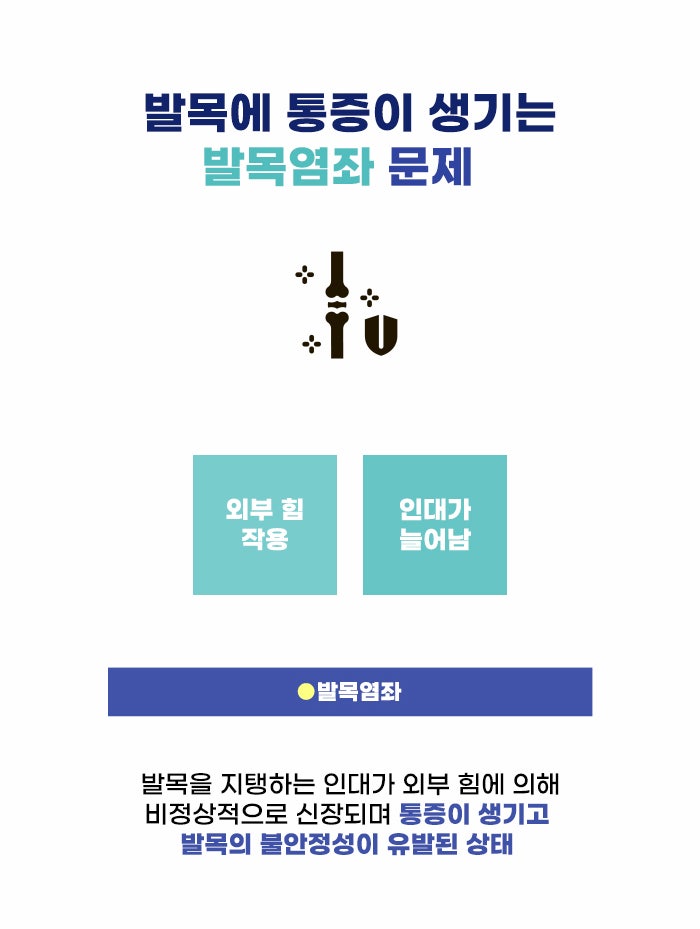 그런데 사고라는 것은 한순간에, 누구에게나 생길 수 있는데요, 일상생활을 하다 혹은 운동을 하다가 생길 수 있는 통증 중 하나가 바로 발목염좌가 아닐까 싶습니다. 사람은 이족보행을 하면서 다른 동물들과 다르게 양손을 자유롭게 사용하고, 여러 무기를 사용할 수 있는 이점을 얻었지만, 그만큼 보행 시 불이익을 얻게 되었는데요, 두 발이 신체의 모든 무게를 지탱하다 보니 부상이 생기기 더 쉬워지게 되었다고 합니다.