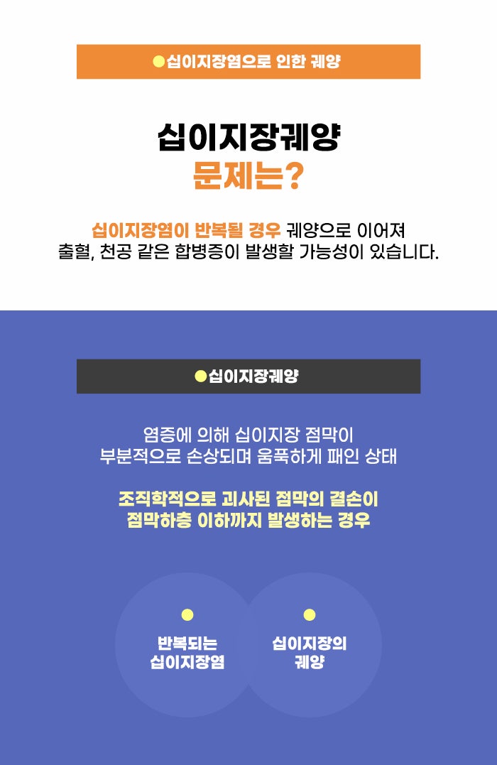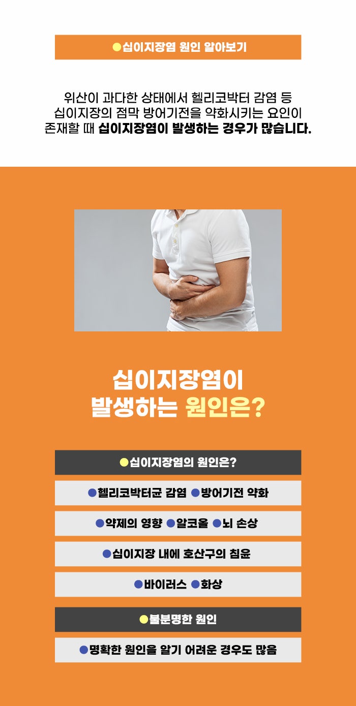 조직학적으로 괴사된 점막 결손이 점막하층 이하까지 발생한 상태를 두고 <십이지장궤양>이라고 부른다고 하는데요. 현재 담적이나 소화불량, 위염과 십이지장염 문제 등으로 고민하고 있는 분이라면, 시간이 지날수록 더욱 문제가 악화되고 십이지장 궤양 등의 손상이 발생할 위험도 무시할 수 없다고 합니다. 우려되는 문제가 있다면 꼼꼼히 문제를 알아보고 더 나은 선택을 할 수 있었으면 합니다!